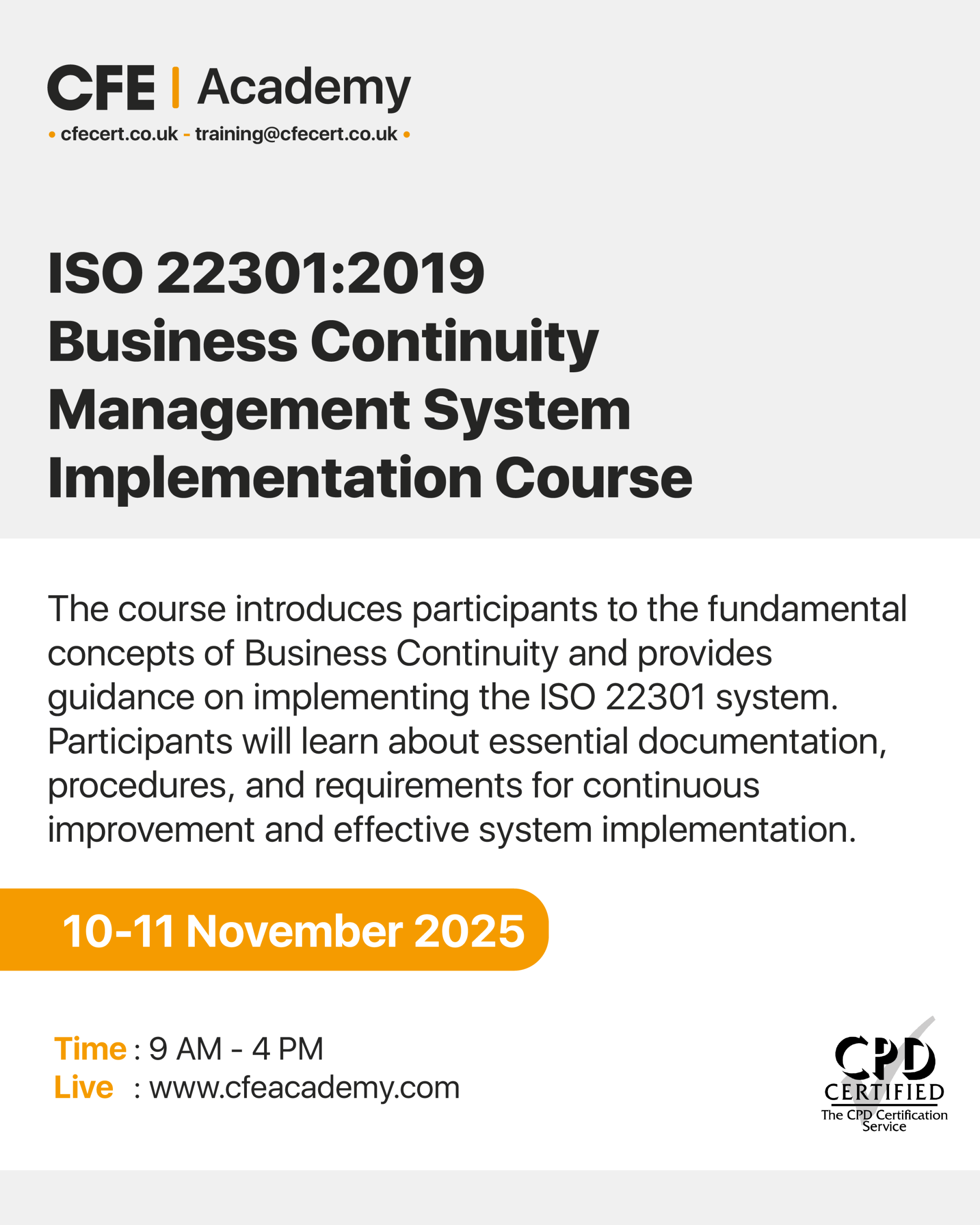 Date/Time: 10 November 2025 at 9:00 am - 11 November 2025 at 4:00 pm Calendar: CFE Event Calendar For registration, please contact: training@cfecert.co.uk